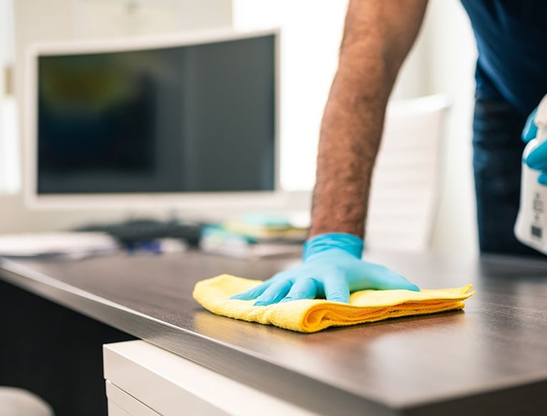 We provide cleaning of desk, floors bathrooms, break rooms & trash removal.